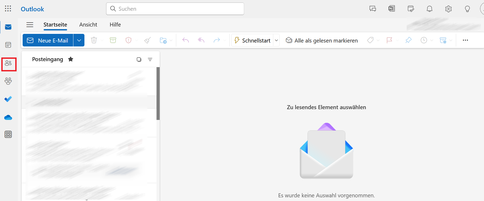 Auch online kannst du dein Adressbuch füllen. Melde dich im Web-Client an und klicke auf das Personen-Symbol links unten in der Leiste: