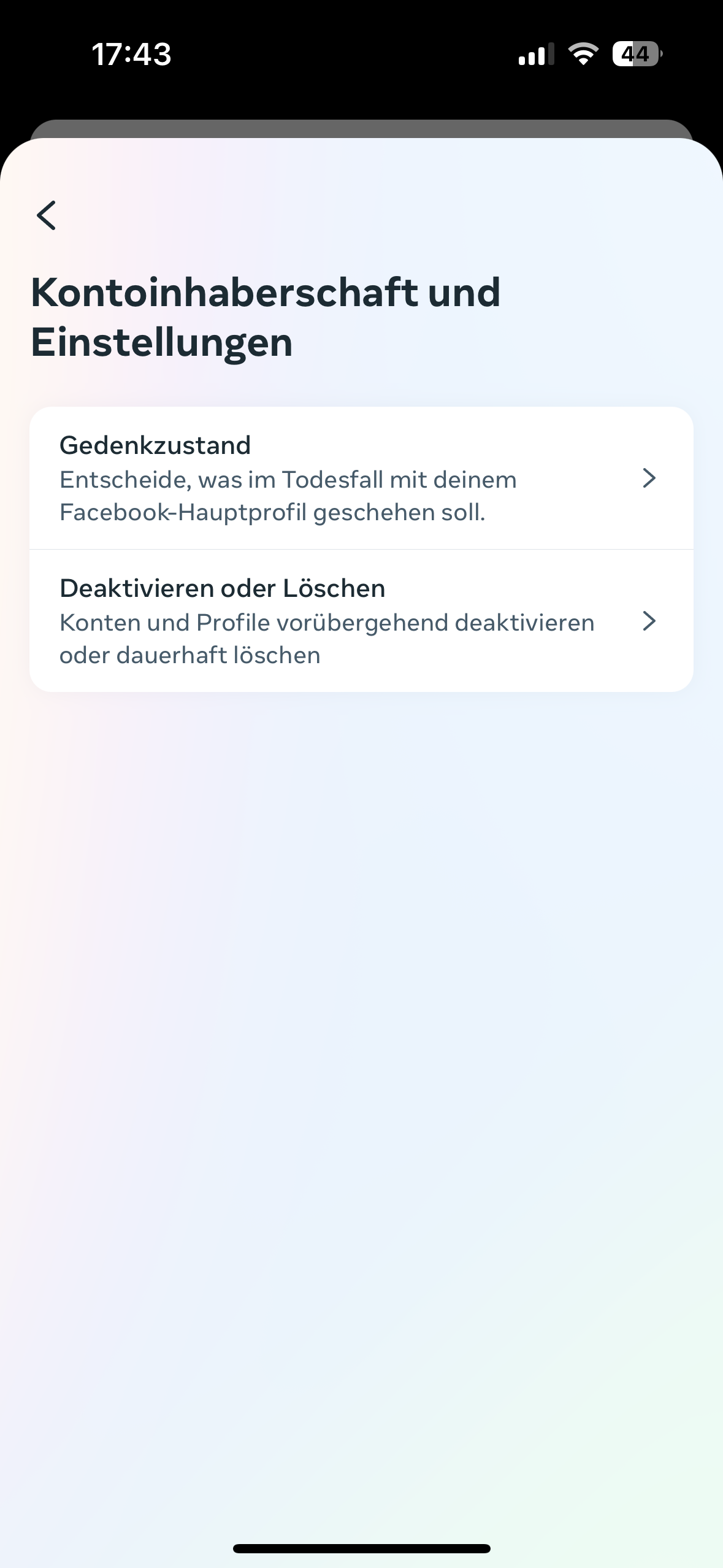 Wähle im Menü „Kon­to­in­ha­ber­schaft und Ein­stel­lun­gen“ die Option „De­ak­ti­vie­ren oder Löschen“ aus.