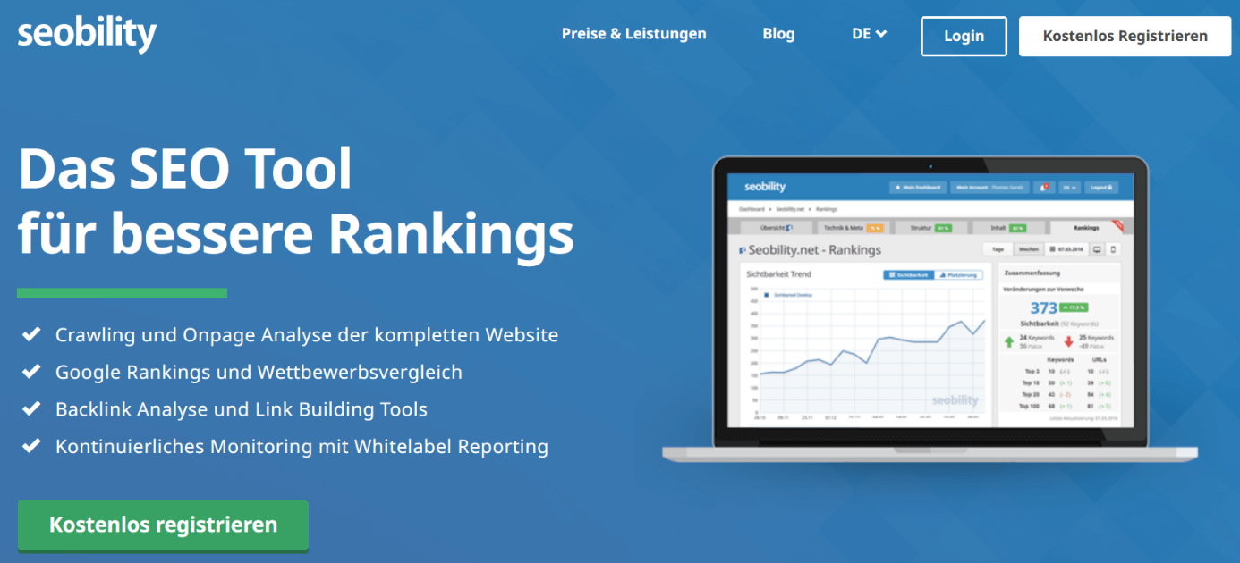 - Rank Tracking: Zeigt dir präzise, wo du in den Suchergebnissen stehst.