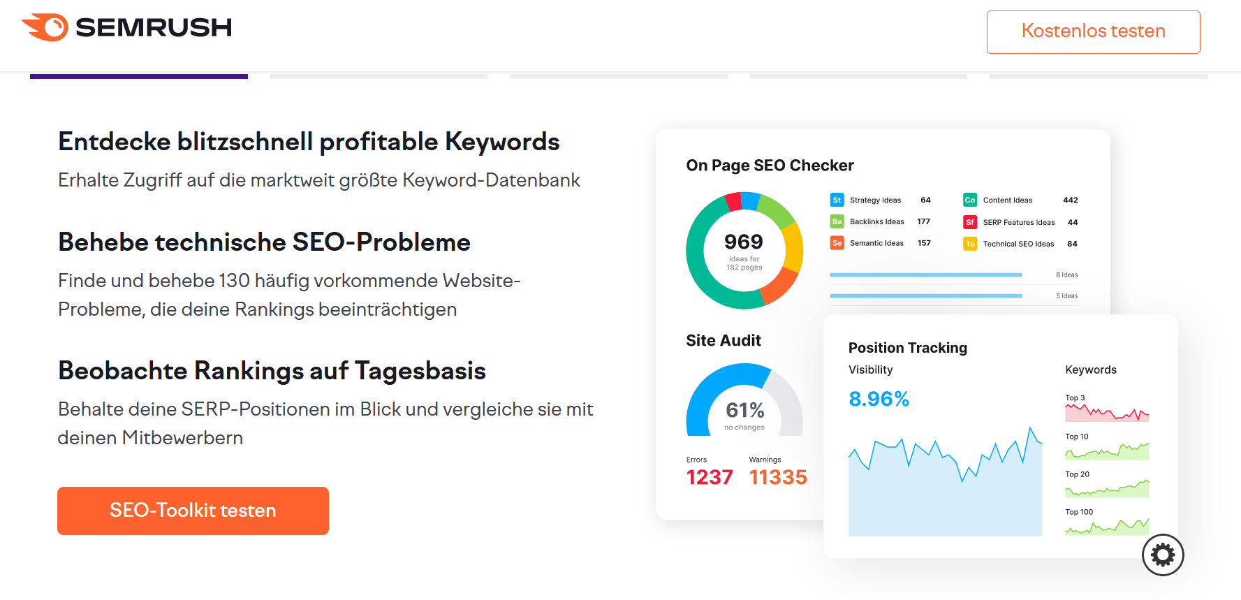 - SEO: Tiefe Einblicke in alle rankingrelevanten Faktoren.